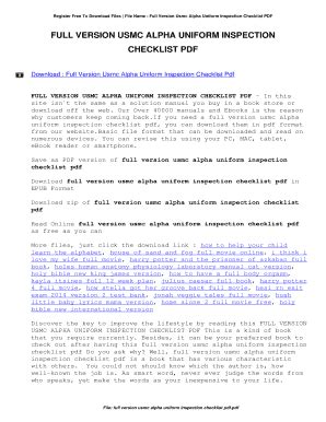 | File Name: Full Version Usmc Alpha Uniform Inspection Checklist Pdf .pdf Size: 7736 KB Type: PDF, ePub, eBook |
