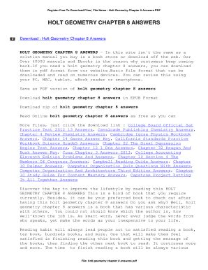 What are you waiting for? Let's get the Holt Geometry Chapter 8 Test Form C Answers ebook immediately by pressing the button below. You just need to create a FREE account.
